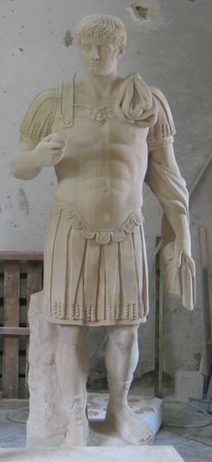 Al largo tiempo transcurrido entre la destrucción del original y la compleja resolución administrativa del expediente se sumó la búsqueda de la piedra adecuada en la cantera. Finalmente, los meses de laboriosa talla. Todos los medios de comunicacion locales estaban pendientes del tema, incluído un popular presentador de TV local, que se colocaba, vestido de romano, un día a la semana para recordar al Ayuntamiento que la ciudad esperaba recuperar "a su romano"...