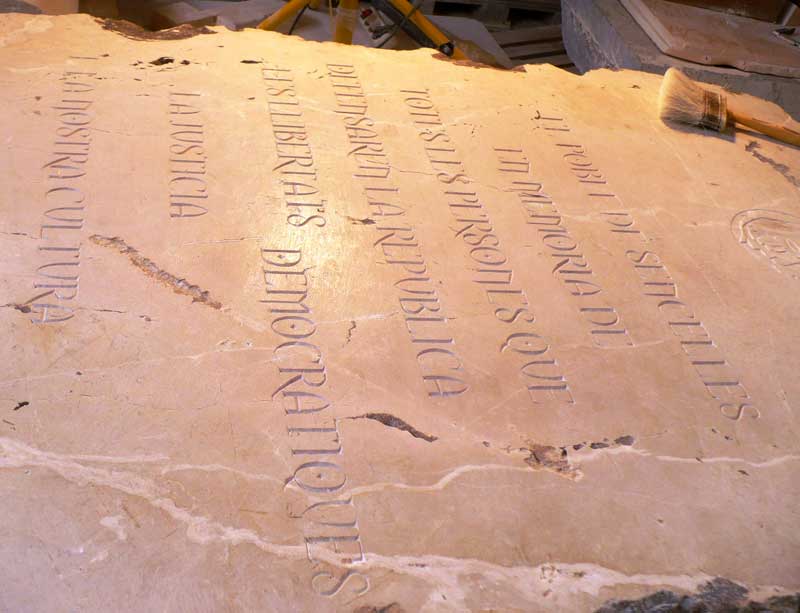 Img: Talla en curso de una placa conmemorativa.