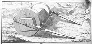encapsulated the ends of the stone block in wooden "wheels"